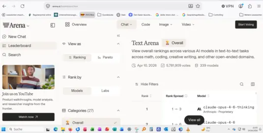 Wo finden Sie ein aktuelles Ranking, über die KI Modelle?
